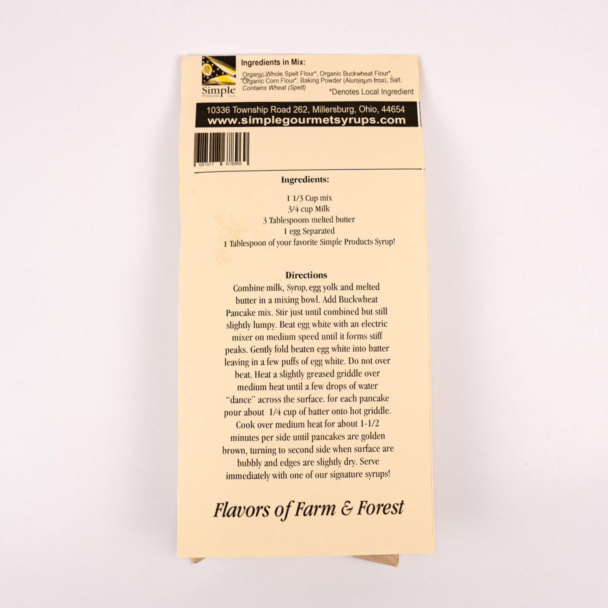 Buckwheat Pancake Mix made with Ohio ingredients. Just add eggs, butter and milk! Easy to follow instructions on the back. Includes: organic whole spelt flour, organic buckwheat flour, organic corn flour, backing powder, and salt. Top with WV maple syrup and start your day!