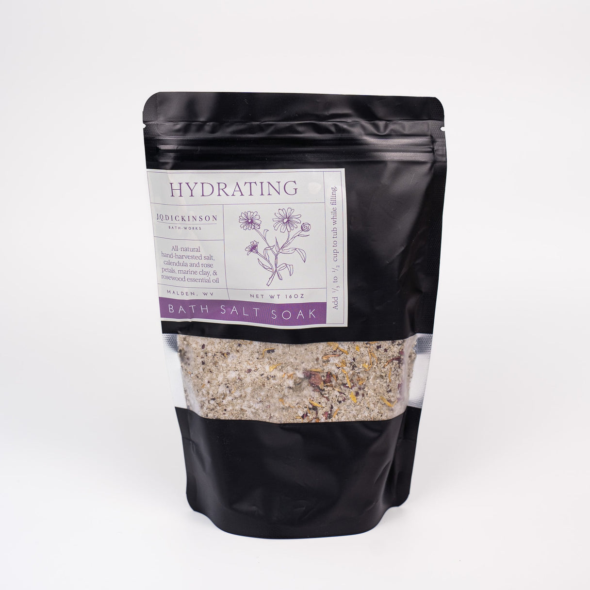 Hydrating: Lock in moisture and leave your skin feeling velvety smooth. Contains hand-harvested salt, calendula and rose petals, marine clay, & rosewood essential oil.