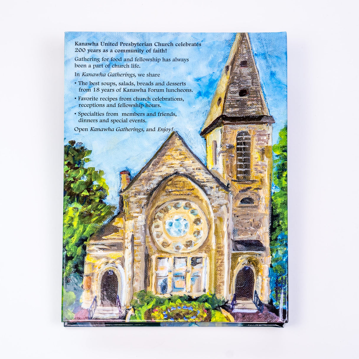 Nearly 50 members of the Kanawha United Presbyterian Church contributed to the cookbook. The recipes cover a wide range of dishes, including soups, salads, main courses, breads, muffins and scones, side dishes, desserts, cookies and candies, and a section on food to make for gatherings.