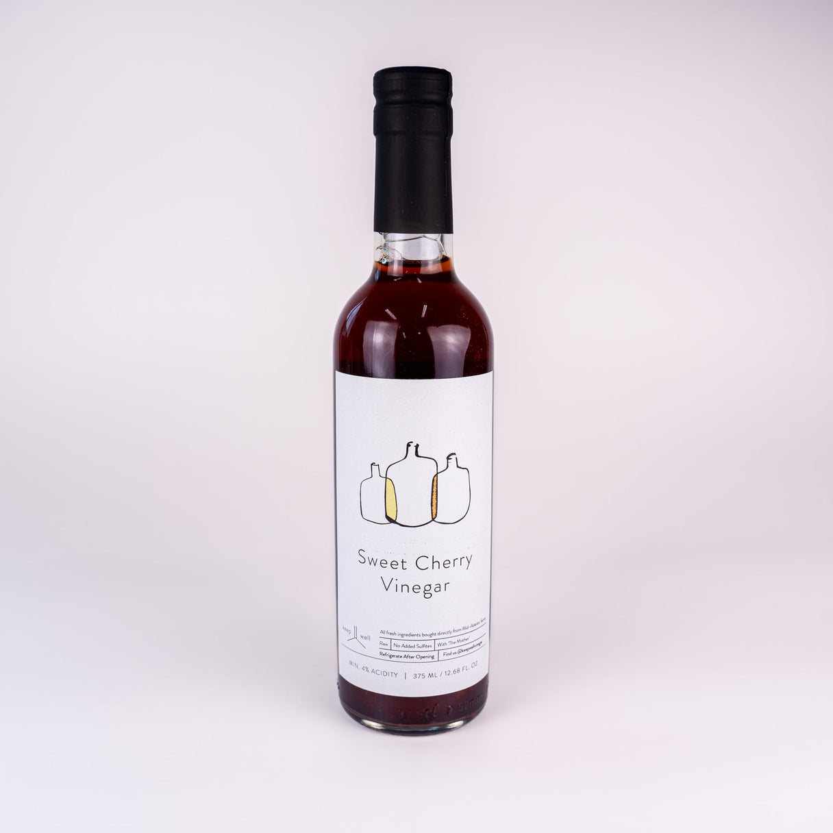 Sweet Cherry: Ultra-ripe whole cherries fermented with apple cider, slightly sweet and sticky, reminiscent of cherry pie. Great for baking or salad dressings!