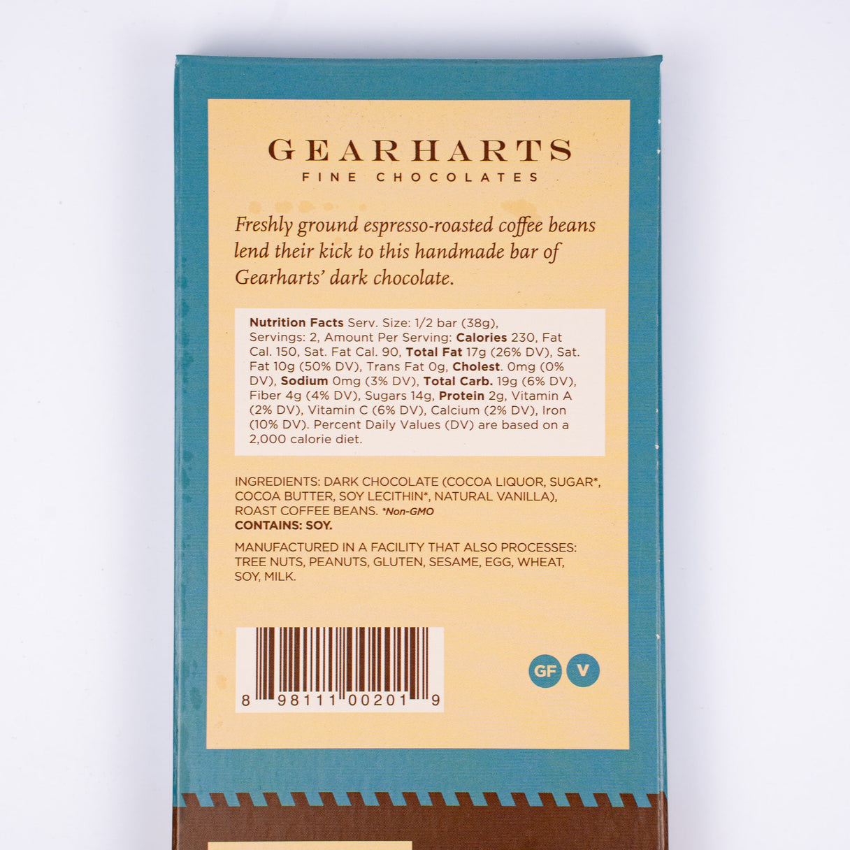Espresso - Dark chocolate with finely ground local espresso-roasted beans (vegan & gluten free)